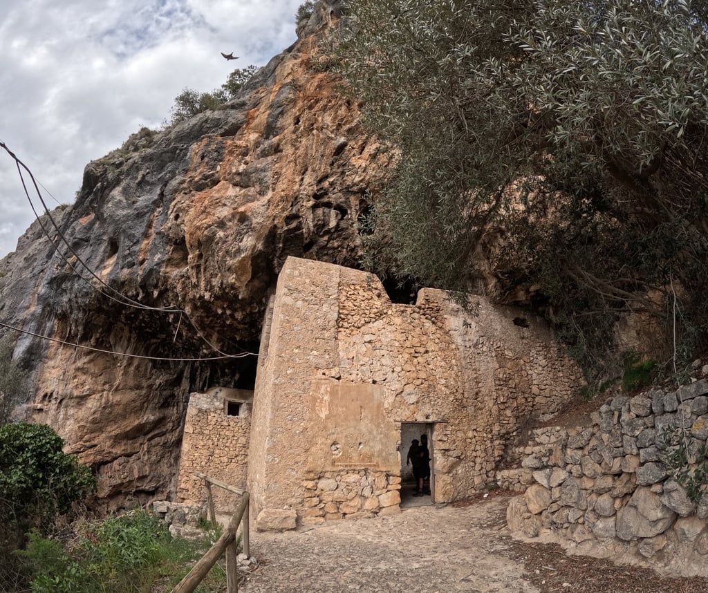 Lasciamo la chiesa alle nostre spalle e seguiamo le indicazioni per l’Eremo di San Michele. Imbocchiamo una strada bianca che costeggia un muro a secco. Il sentiero si affaccia sulla Valle del Liri e attraversa i ruderi della vecchia Caprile. Fra piante di Asphodelus e di Agave arriviamo prima alla cosiddetta Caverna Scura, probabile luogo di rifugio per la fauna selvatica; e dopo qualche altro passo fra i terrazzamenti assolati giungiamo alla falesia detta proprio “il bracere dei poveri” per quanto sia esposta ai raggi solari.