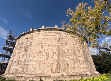 Ci spostiamo sulla passeggiata, dove il Parco ha disposto delle strutture in legno per fare esercizi. Quando vediamo le indicazioni per il Mausoleo, saliamo fino al punto più alto del monte, dove ci attende appunto il Mausoleo di Lucio Munazio Planco, generale romano e console sotto Ottaviano Augusto, amante di Gaeta. Proprio accanto c’è il Faro di Monte Orlando, guardiano silenzioso del golfo.