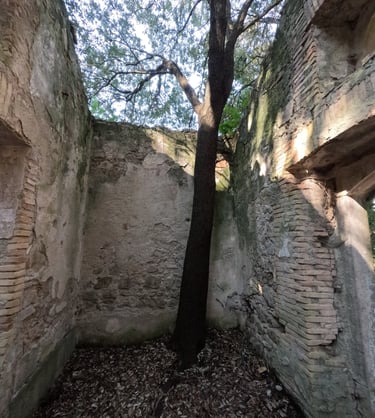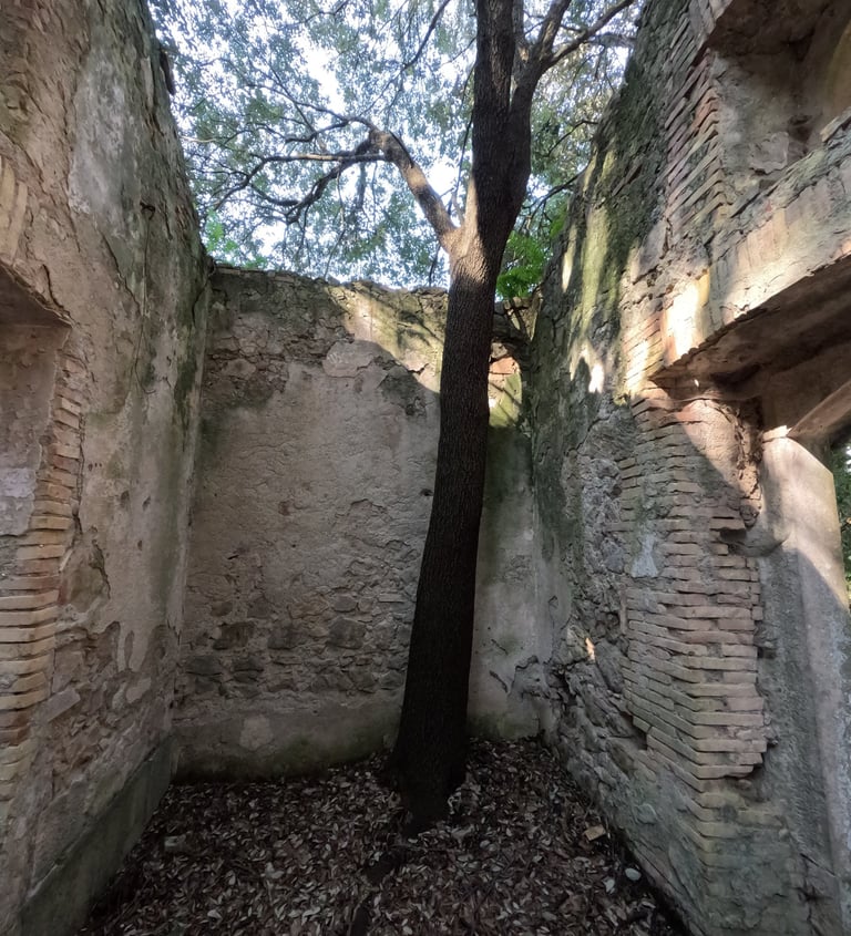 Quando arriviamo ad un edificio in cui diversi alberi sono riusciti a crescere spontaneaente, dobbiamo voltare a destra e prepararci ad affrontare i tornanti di via Santa Maria Ausiliatrice per scendere a Gaeta Vecchia.